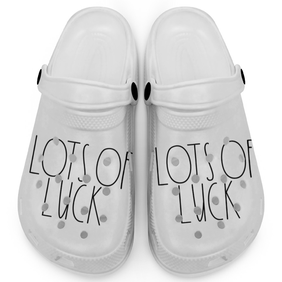 Buy stunning Lots of Luck Rae Dunn Inspired Minimalist Decor Clogs or see more Clogs products at Printblur right now to receive many amazing discounts!