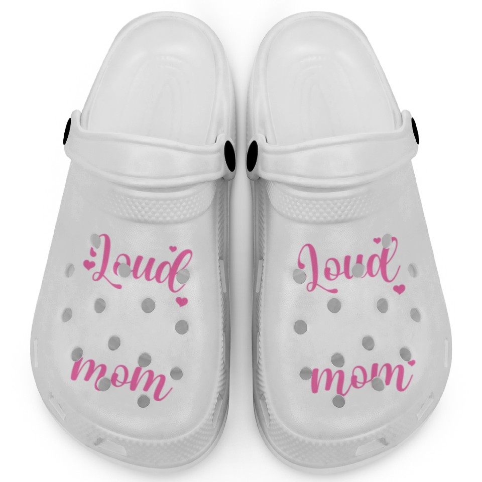 The item hot trend you're looking at is Loud and Proud Cheer Mom Clogs For Kids WHITE belong theme Clogs at Printblur