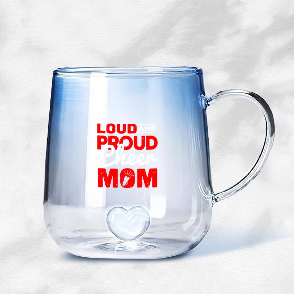 You're searching for a one-of-a-kind product Loud & Proud Cheer Mom Cheerleading Mother's Day Gradient Glass Mugs For Blue belong theme Gradient Glass Mugs at Printblur