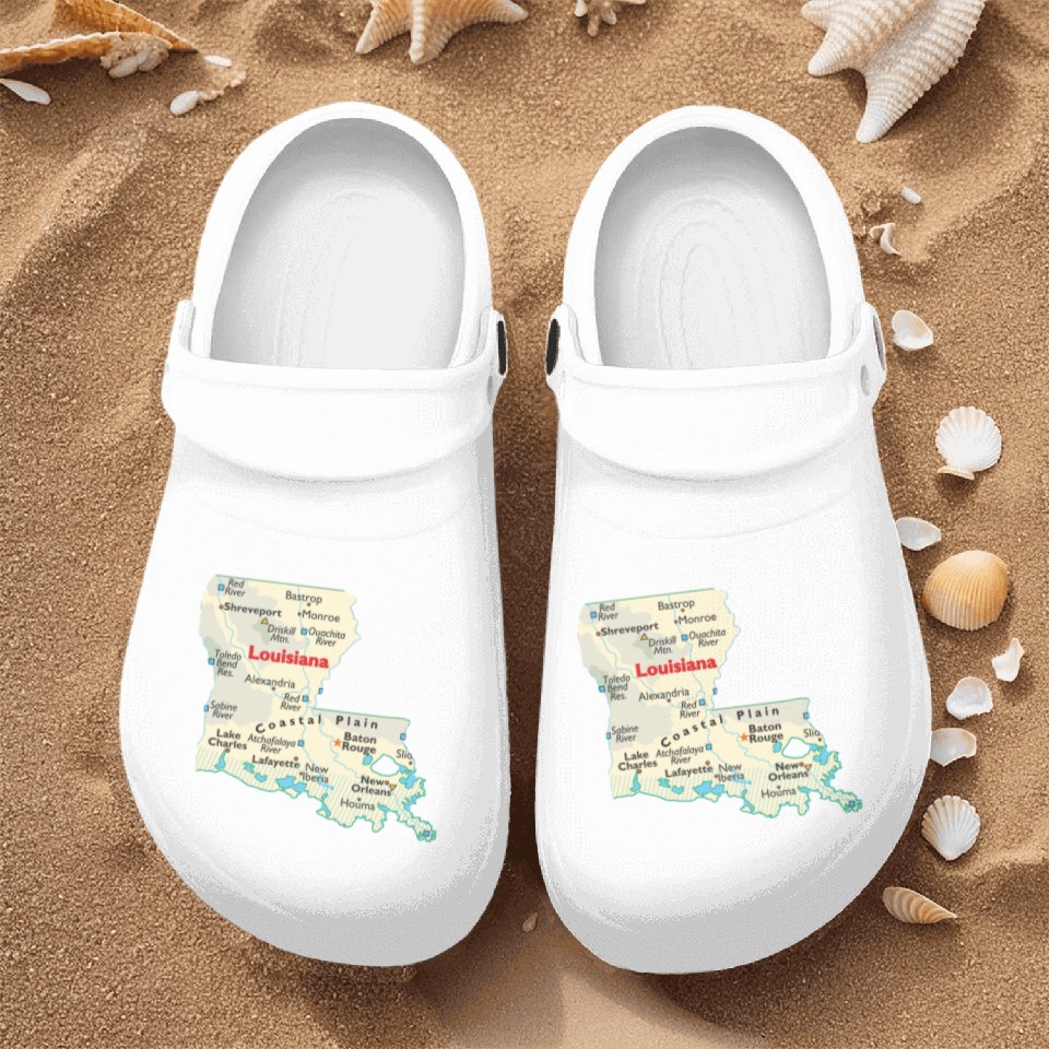 The item hot trend you're looking at is Louisiana map image of state. Nurse Clogs For Men WHITE belong theme Nurse Clogs at Printblur