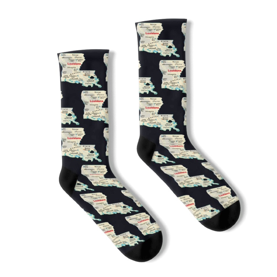 Own fascinating Louisiana map image of state. Socks or see more Socks products now from Printblur shop to enjoy your shopping time!