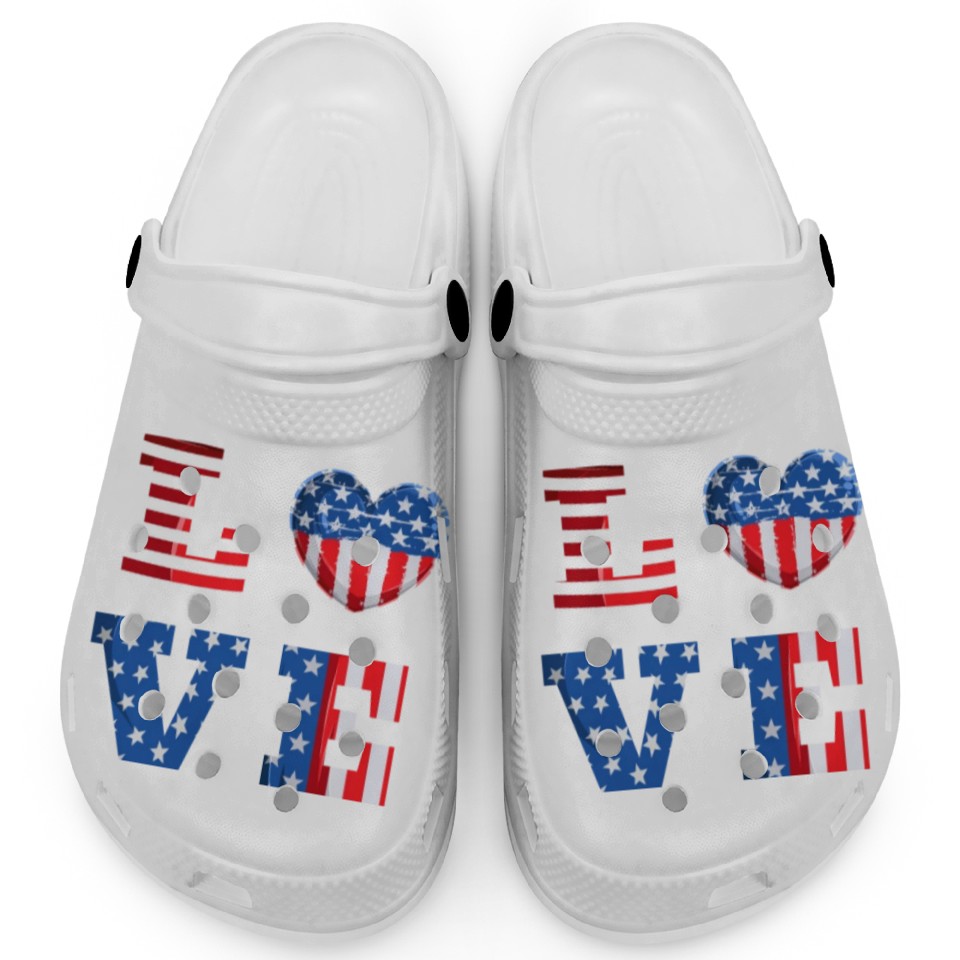 Own fascinating LOVE America Independence Day USA Patriots Clogs or see more Clogs products now from Printblur shop to enjoy your shopping time!