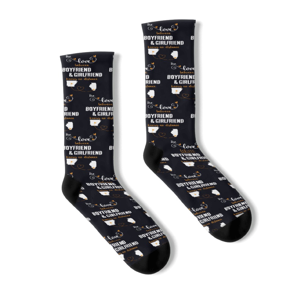Buy stunning Love Between BF And GF Arkansas To Illinois Gift Socks or see more Socks products at Printblur right now to receive many amazing discounts!