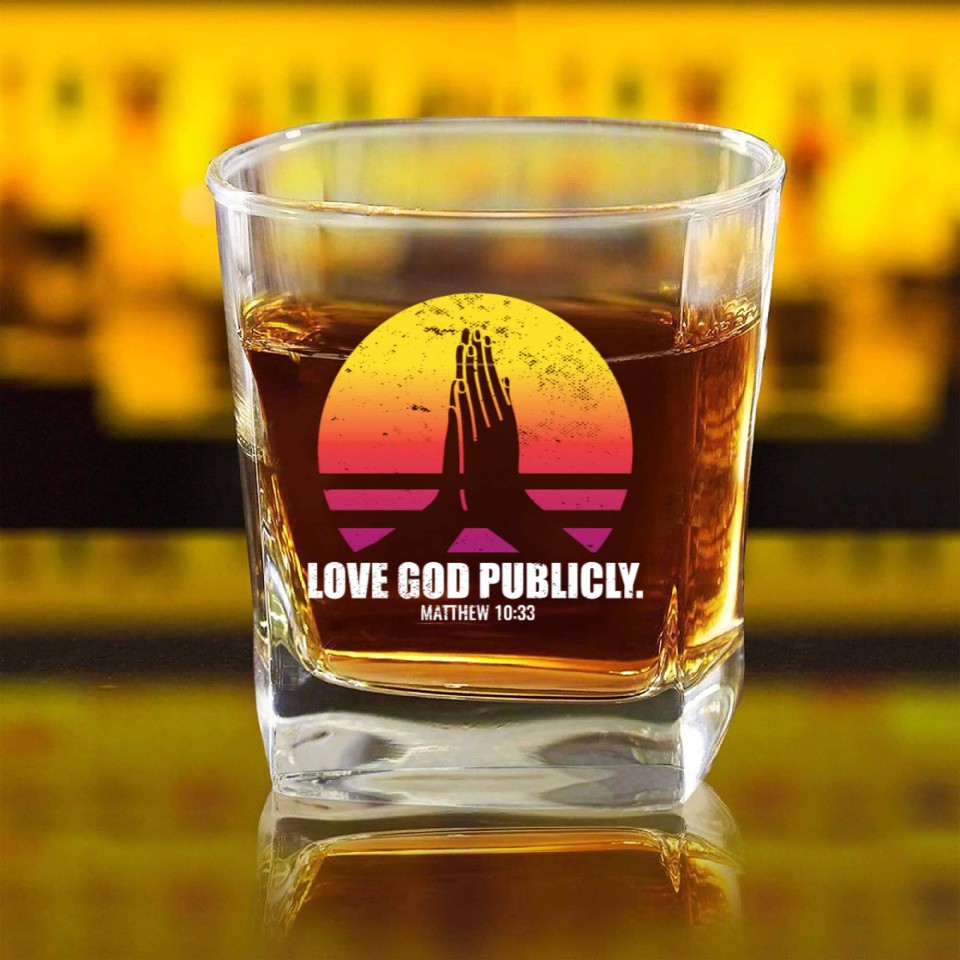 Love God Publicly Bible Verse Quote Jesus Church Square Whiskey Glasses