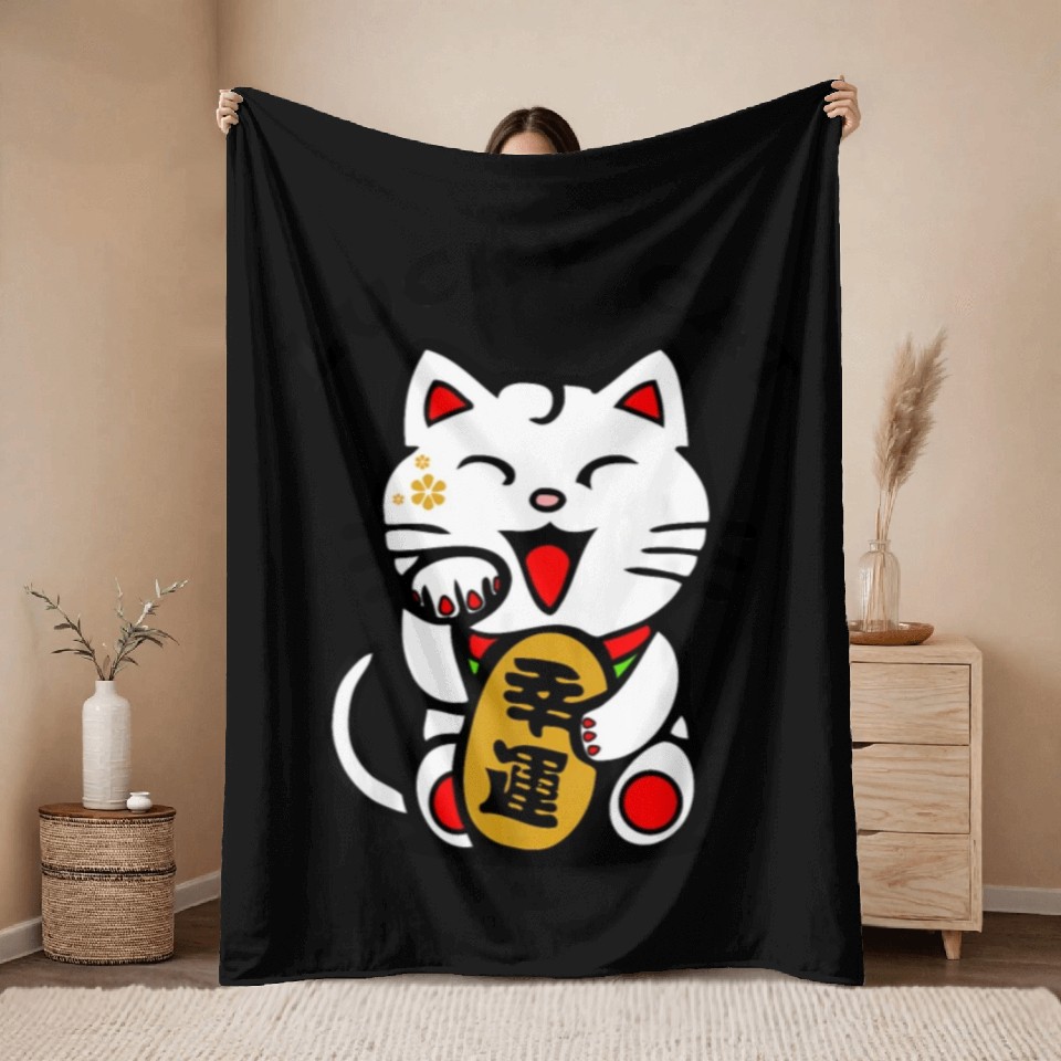 Buy eye-catching Lucky Cat Maneki-Neko Japanese Luck Feng Shui Throw Blankets or see more Throw Blankets products at Printblur shop now to explore many surprises from our shop!