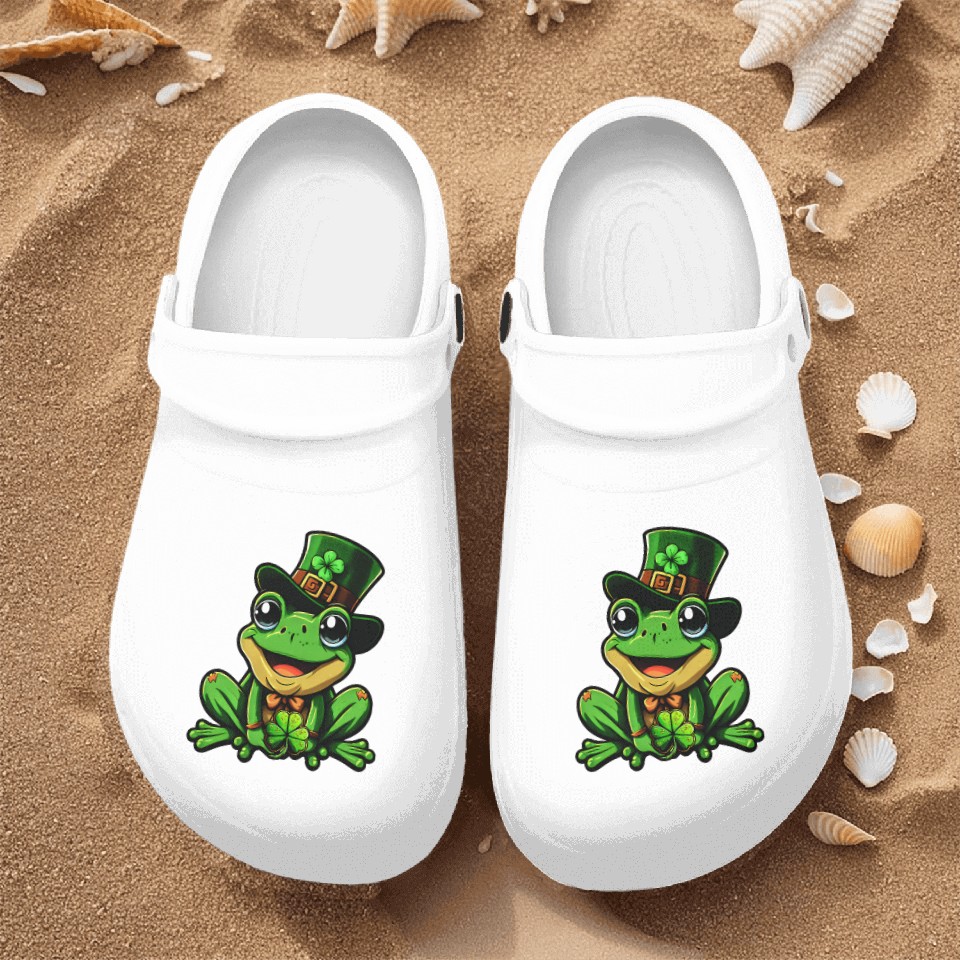 You're taking a peek at the product Lucky Frog St. Patrick's Day Top Hat Nurse Clogs For Men WHITE belong theme Nurse Clogs at Printblur