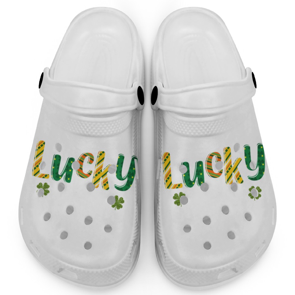 The product unique design you searched for is Lucky To Be A Principal School St Patrick's Day Clogs For Kids WHITE belong theme Clogs at Printblur