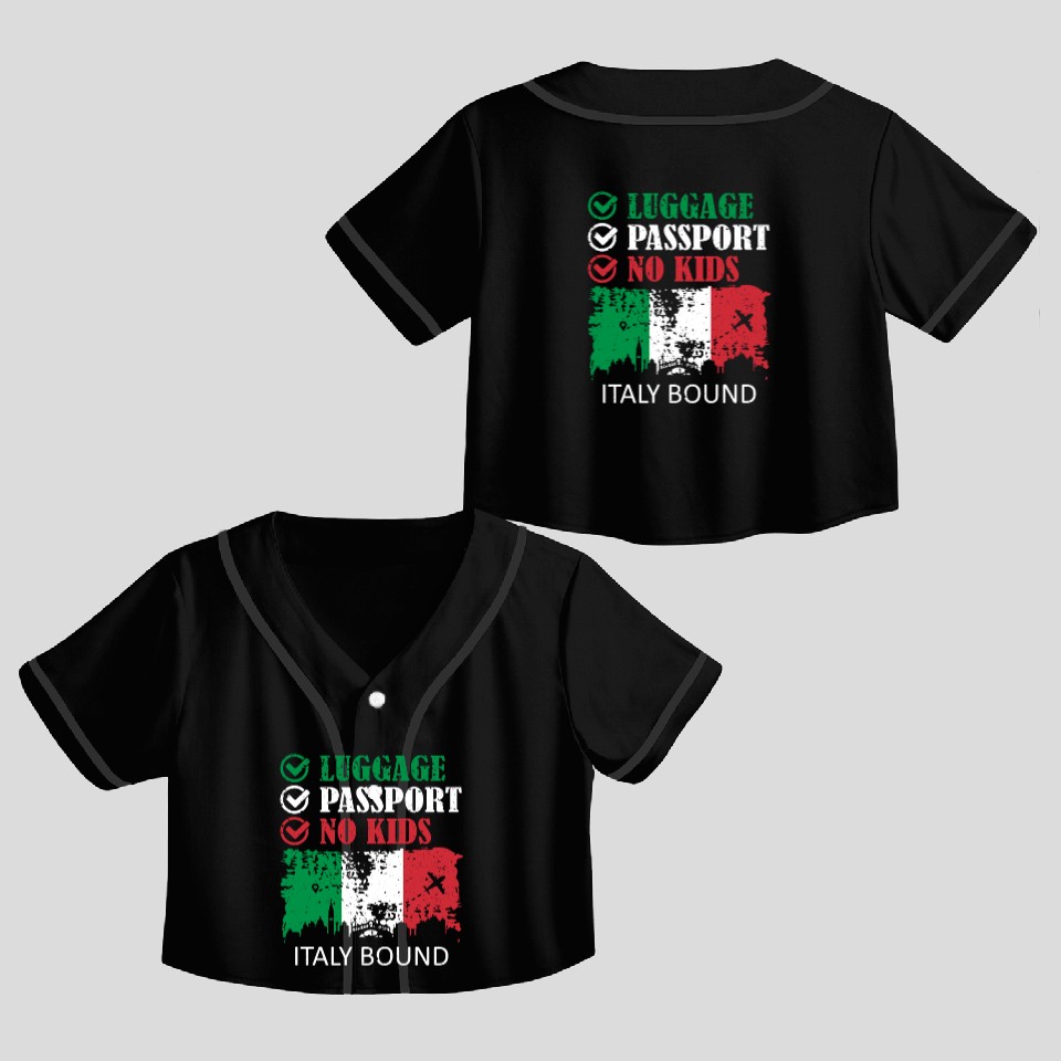 Buy eye-catching Luggage Passport No Kids Italy Bound Vacation Crop Top Baseball Jerseys or see more Crop Top Baseball Jerseys products at Printblur shop now to explore many surprises from our shop!