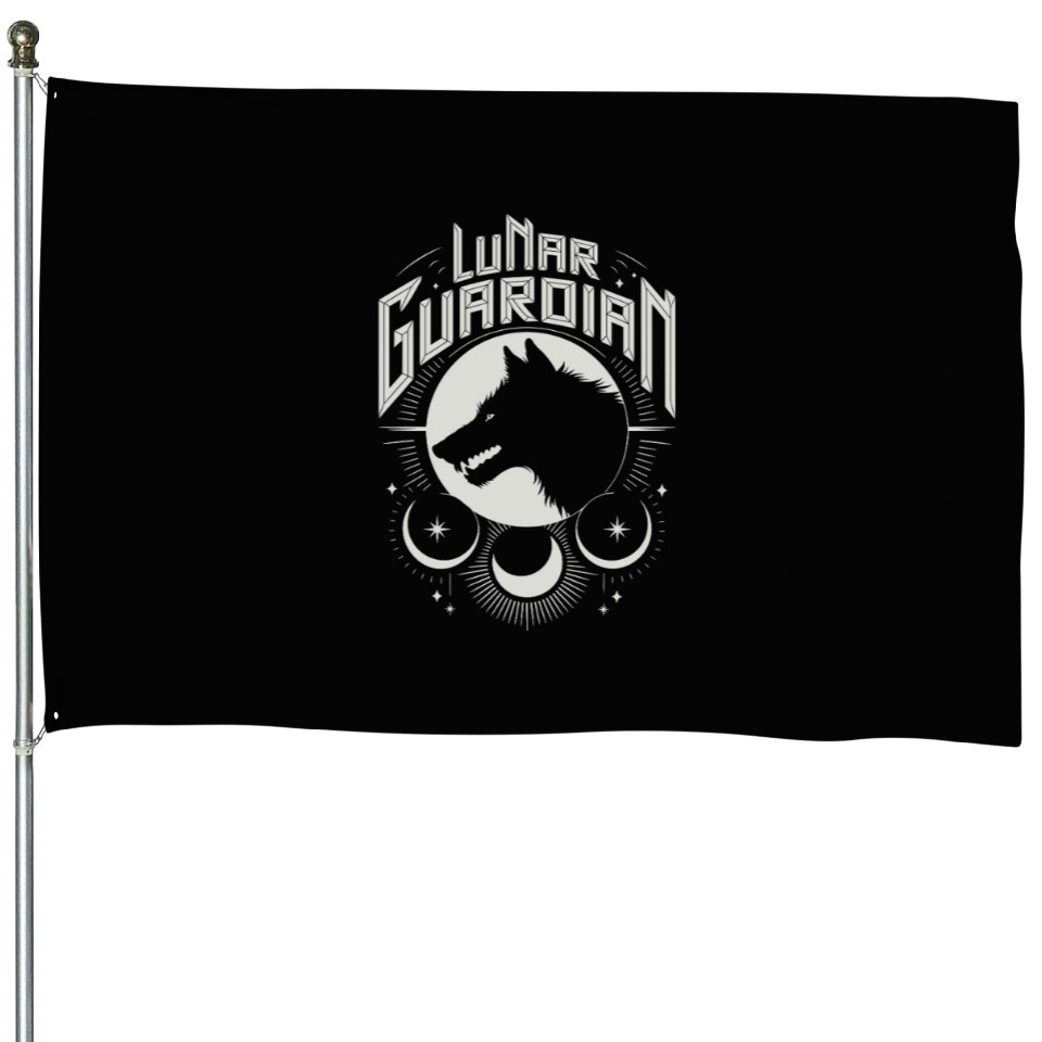 You're looking at the eye-catching product Lunar Guardian Celestial Wolf Moon Phases House Flags For Black belong theme House Flags at Printblur