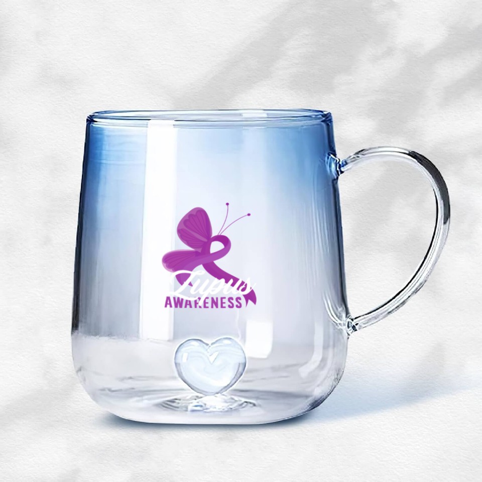 Buy eye-catching Lupus Awareness Butterfly Embrace Gradient Glass Mugs or see more Gradient Glass Mugs products at Printblur shop now to explore many surprises from our shop!