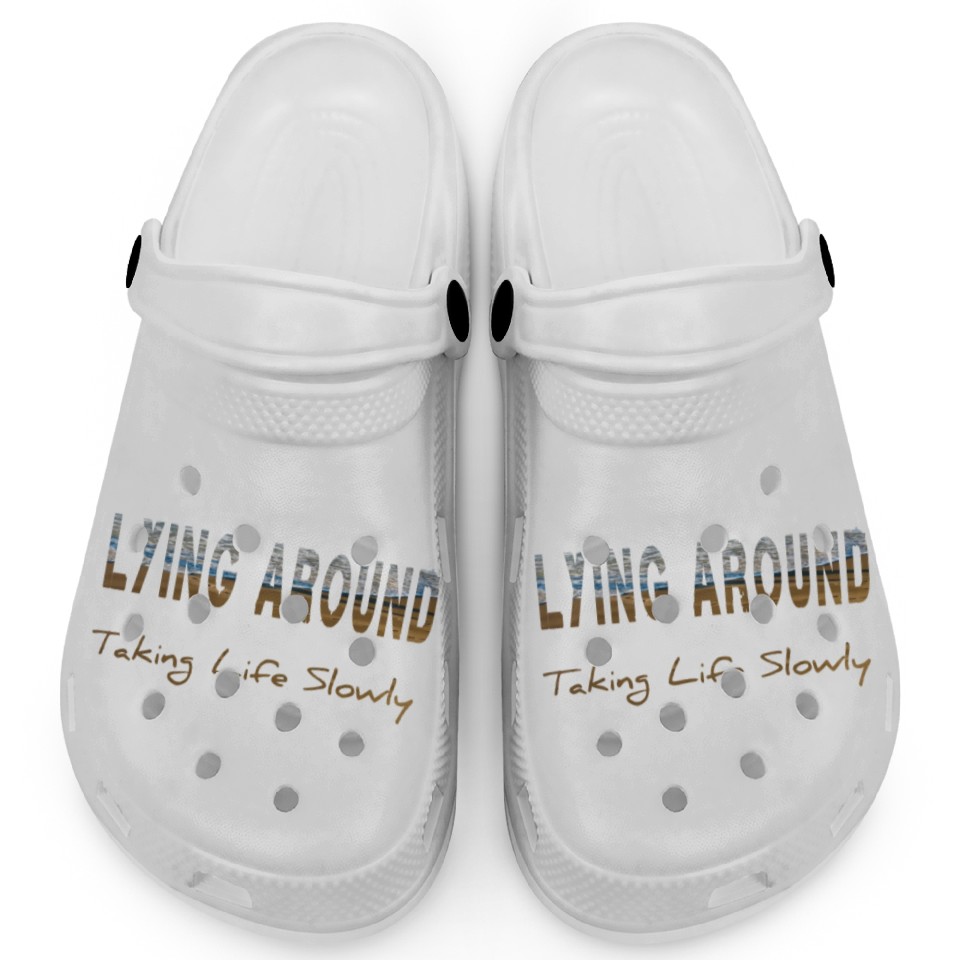 You are viewing an exclusive and elegant product Lying around taking life slowly Clogs For Kids WHITE belong theme Clogs at Printblur