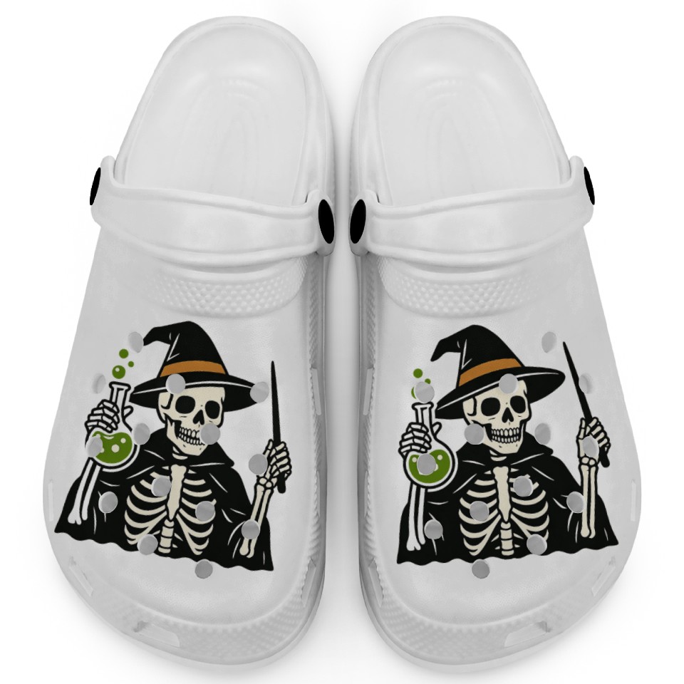 You are viewing one of the trendiest products Magical Skeleton Wizard Illustration Clogs For Kids WHITE belong theme Clogs at Printblur