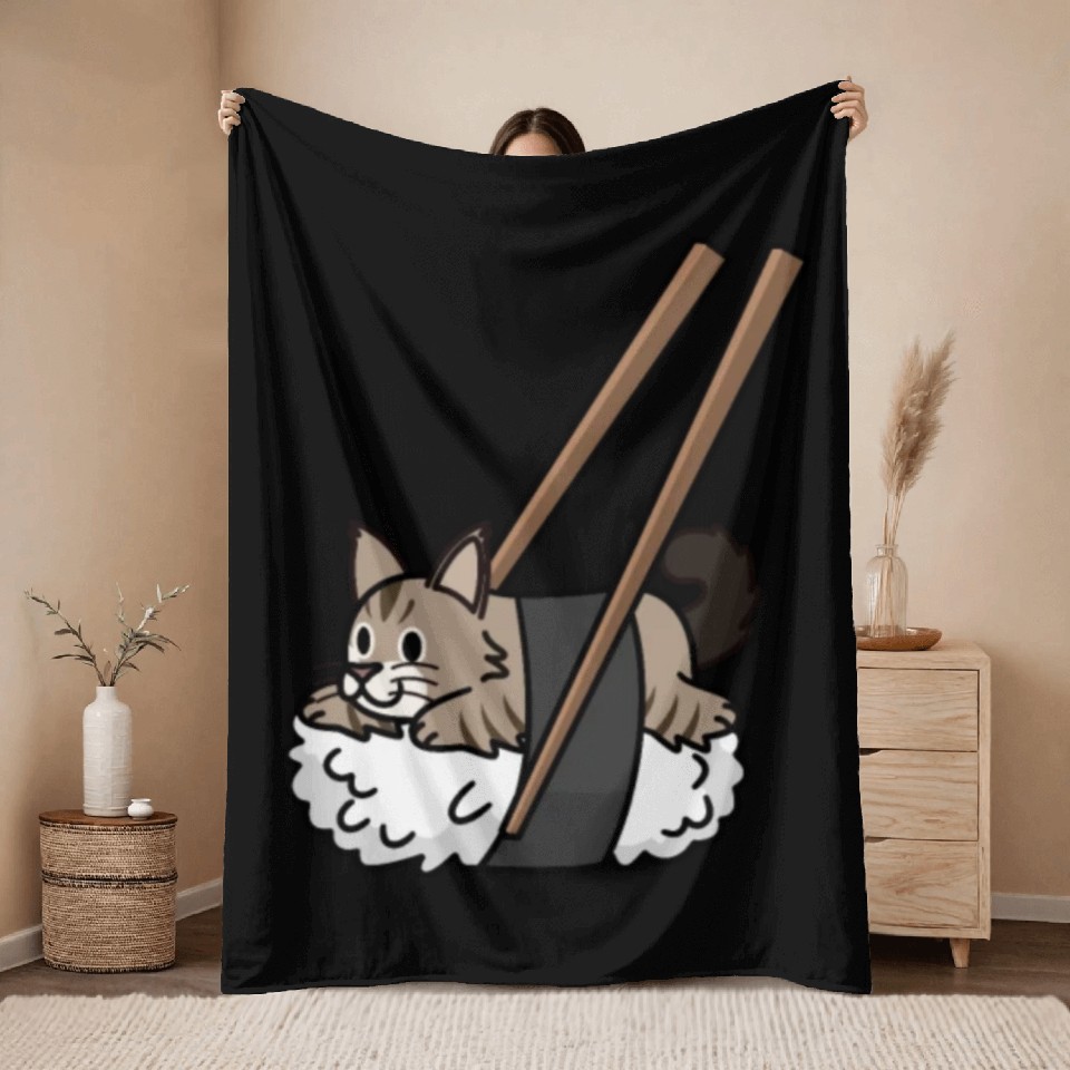 You're searching for a one-of-a-kind product Maine Cat Nigiri Sushi Throw Blankets For Black belong theme Throw Blankets at Printblur