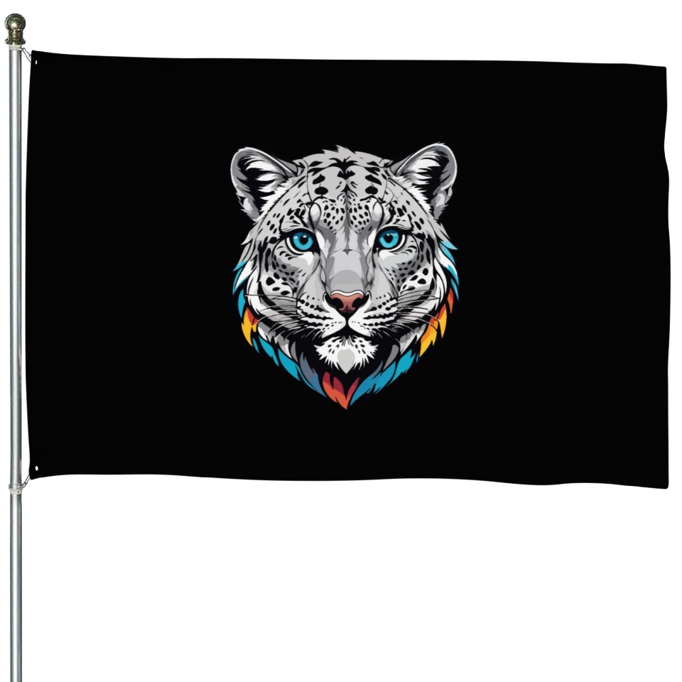 You're looking at the eye-catching product Majestic Snow Leopard Portrait - Exotic Wildlife House Flags For Black belong theme House Flags at Printblur