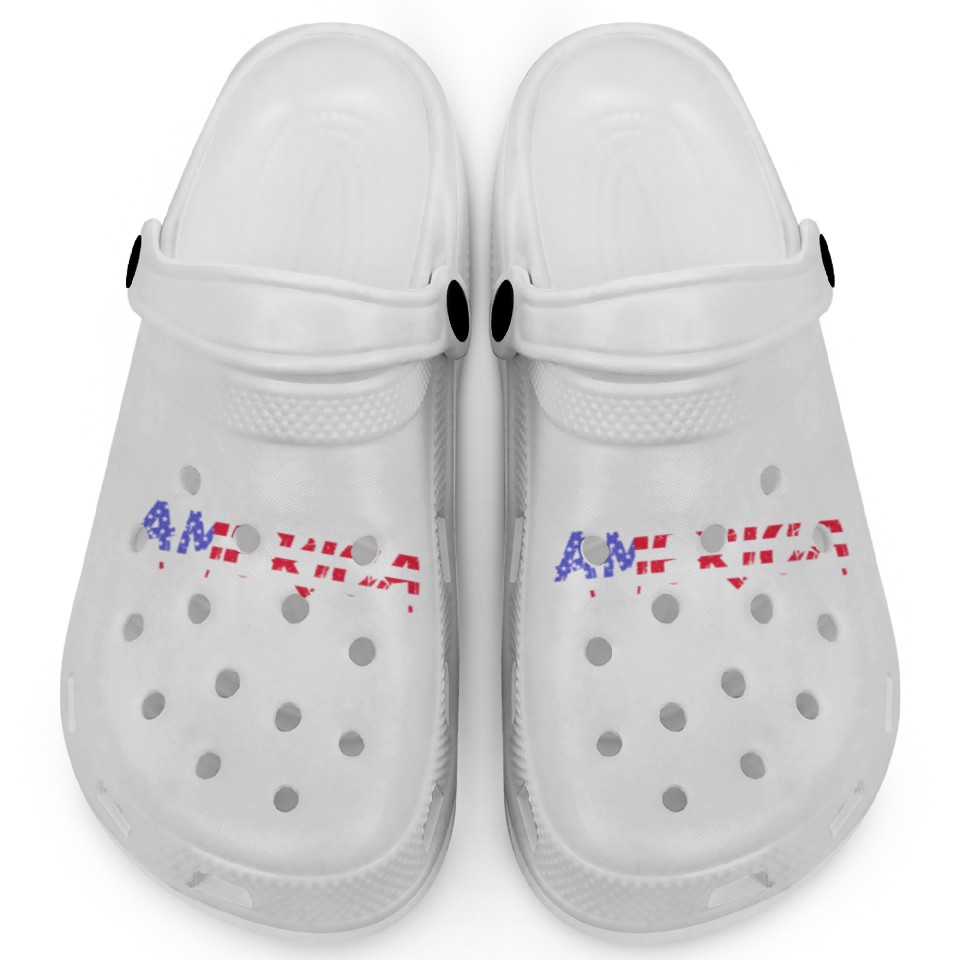 The item hot trend you're looking at is Make America V8 Again Muscle Car Drag Racing Trump Clogs For Kids WHITE belong theme Clogs at Printblur