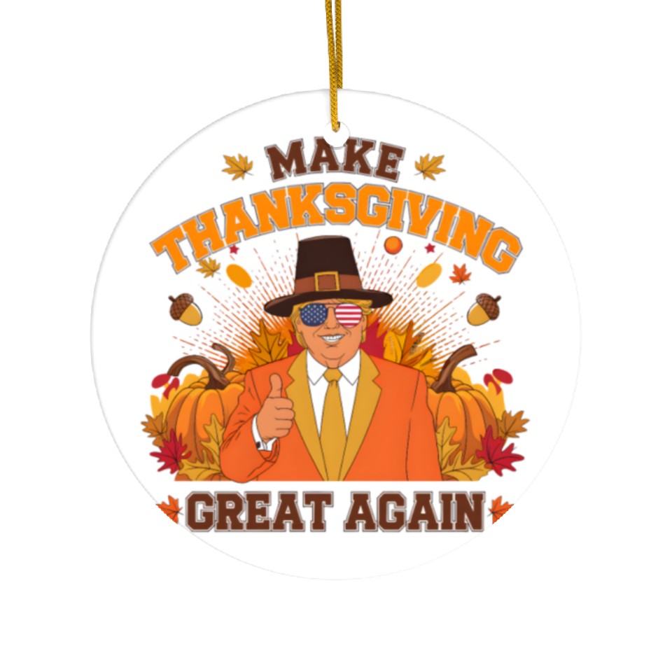 The product unique design you searched for is Make Thanksgiving Great Again Autumn Fall Leaves Ceramic Ornaments For WHITE belong theme Ceramic Ornaments at Printblur
