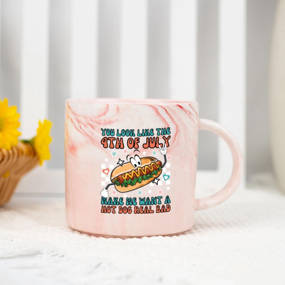 You are viewing an exclusive and elegant product Makes Me Want A Hot Dog Real Bad, 4th July Marble Mugs For Pink belong theme Marble Mugs at Printblur