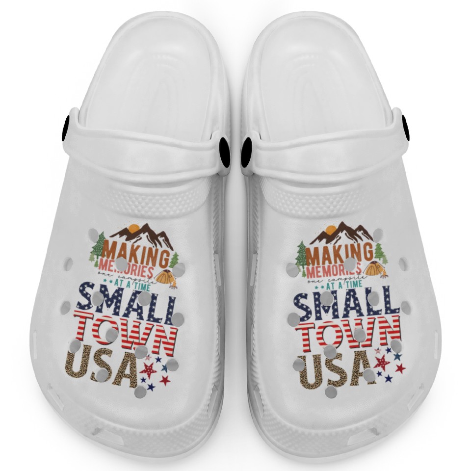 Buy eye-catching Making Memories At A Time Small Town USA Clogs or see more Clogs products at Printblur shop now to explore many surprises from our shop!