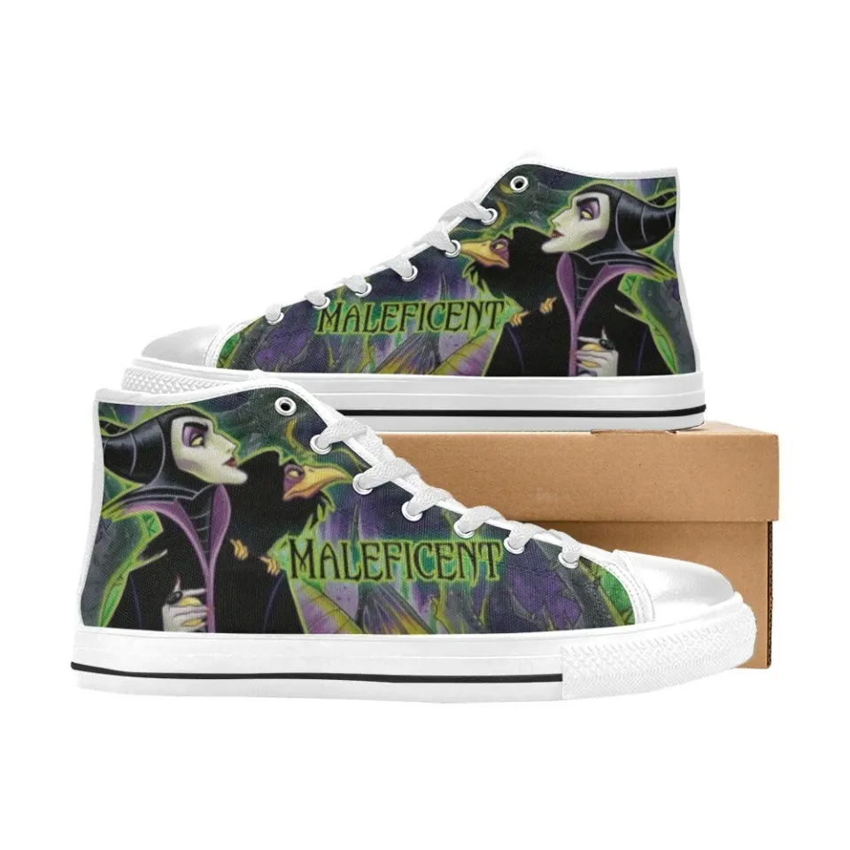You're looking at the eye-catching product Maleficent High Top Sneakers For Women WHITE belong theme Men's High Top Sneakers at Printblur