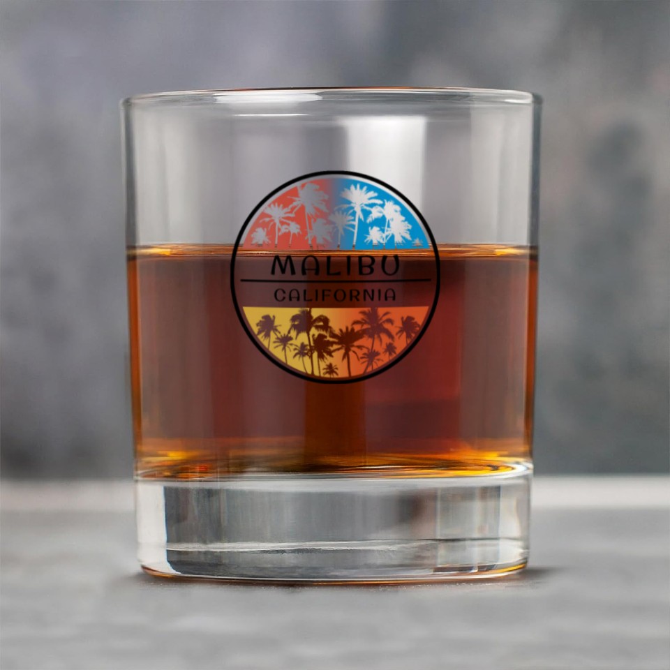 You are viewing an exclusive and elegant product Malibu California Palm Tree Stylish Vacation Rock Glasses For belong theme Rock Glasses at Printblur