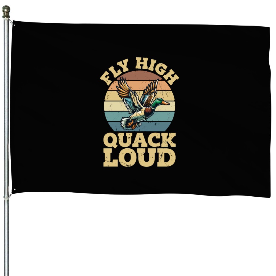 Own fascinating Mallard Duck Fly High Quack Loud Retro Water Bird House Flags or see more House Flags products now from Printblur shop to enjoy your shopping time!