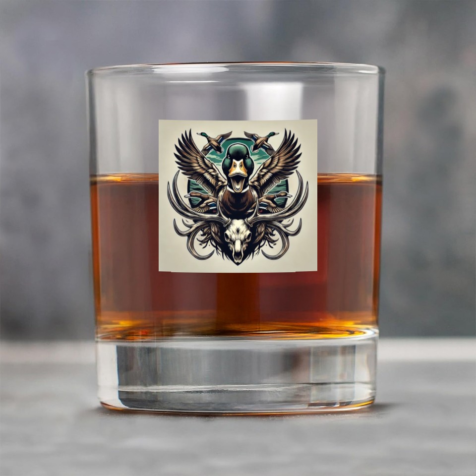 You are viewing an exclusive and elegant product Mallard duck flying over deer skull in marsh Rock Glasses For belong theme Rock Glasses at Printblur