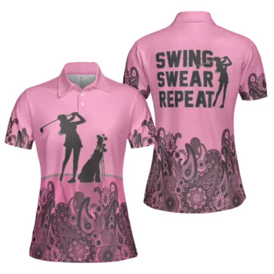Own fascinating Mandala Pattern Swing Swear Repeat Girl Golf Short Sleeve Women Polo Shirt or see more Polo shirts products now from Printblur shop to enjoy your shopping time!