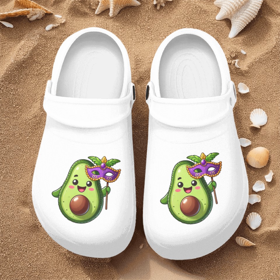 You're searching for a one-of-a-kind product Mardi Gras Avocado Vegan Veggie Cartoon Nurse Clogs For Men WHITE belong theme Nurse Clogs at Printblur