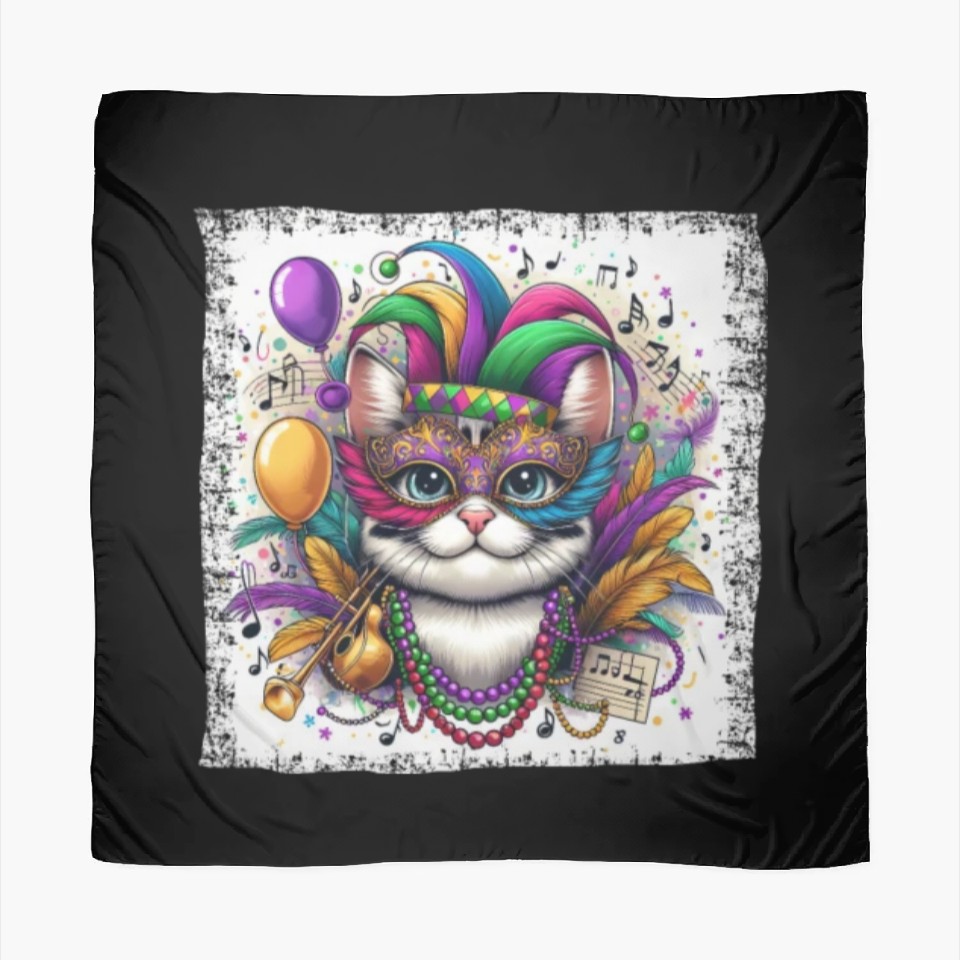 Mardi Gras Cat Mask Colorful Music Carnival Scarves