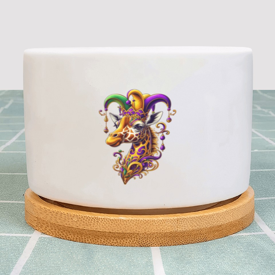 Own fascinating Mardi Gras giraffe with fool's hat Plant Pots or see more Plant Pots products now from Printblur shop to enjoy your shopping time!