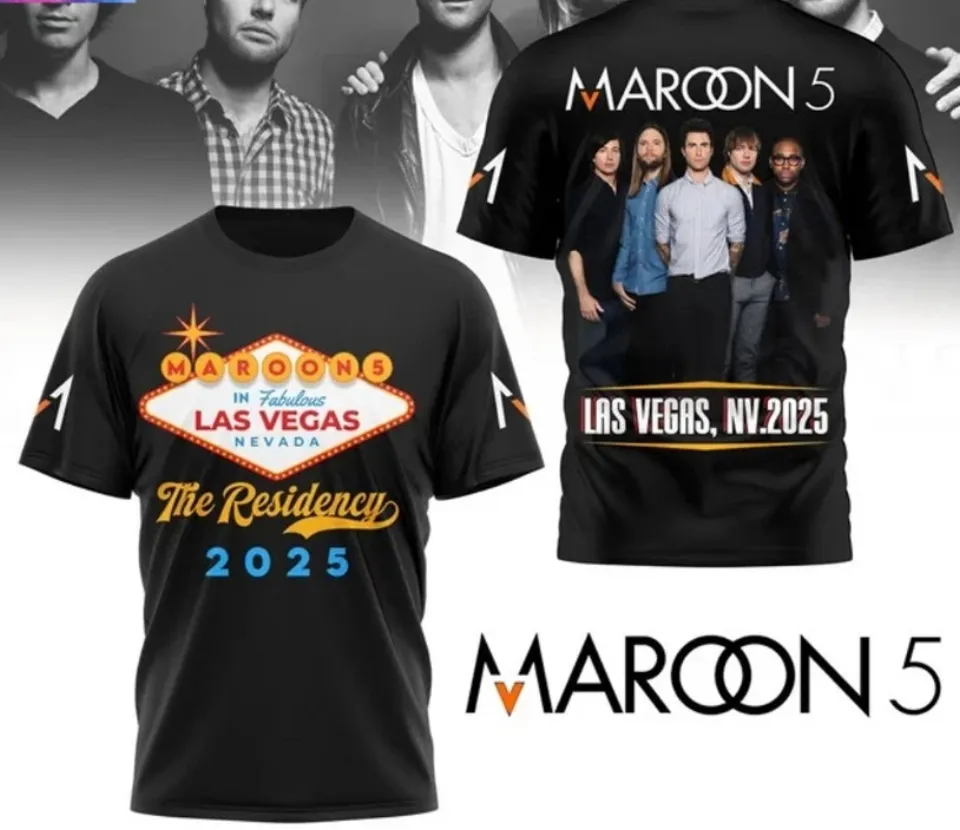 Shop for attractive Maroon 5 The Residency 2025 Tour 3D T-Shirt or see more 3D T Shirts products on https://printblur.com right now!