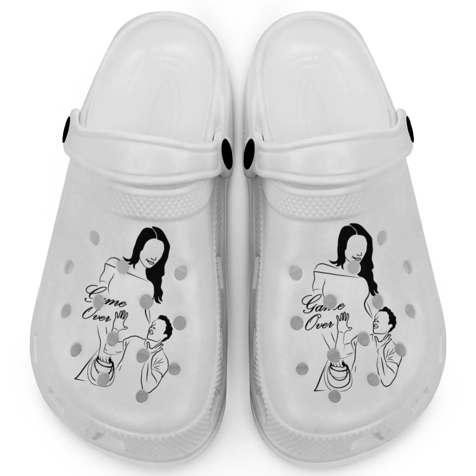 You're taking a peek at the product Marriage - Game Over Clogs For Kids WHITE belong theme Clogs at Printblur