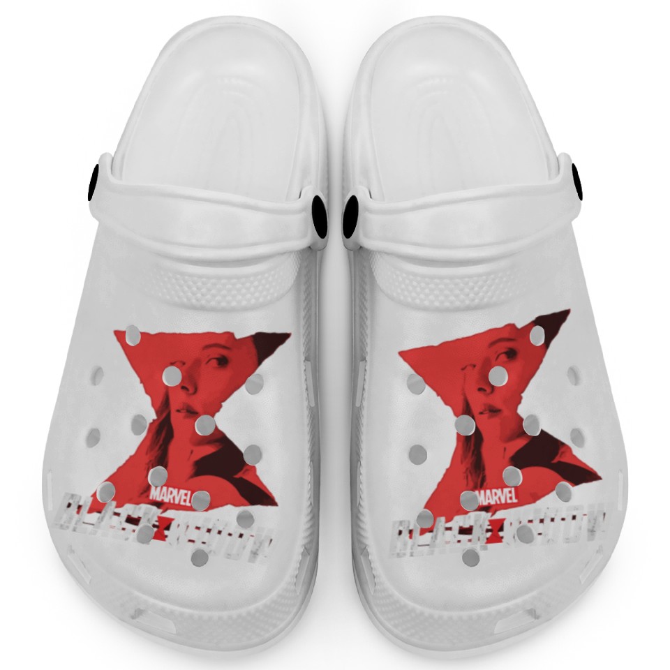 You're searching for a one-of-a-kind product Marvel Black Widow Natasha Romanoff Hourglass Clogs For Kids WHITE belong theme Clogs at Printblur