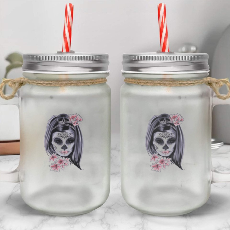 You're searching for a one-of-a-kind product mask zombie girl flower Mason Jar Cups For belong theme Mason Jar Cups at Printblur
