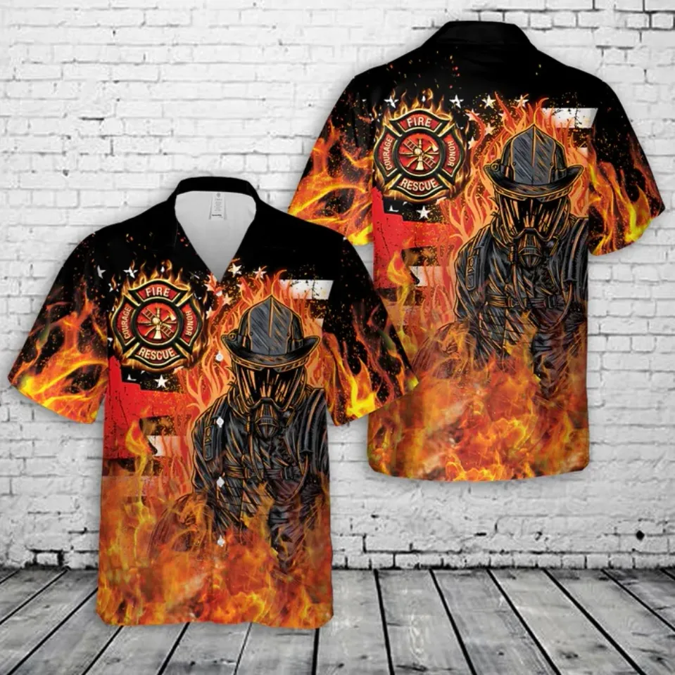 Shop for attractive Masked Firefighter Fire Rescue with Burning American Flag Hawaiian Shirt or see more Hawaiians products on https://printblur.com right now!