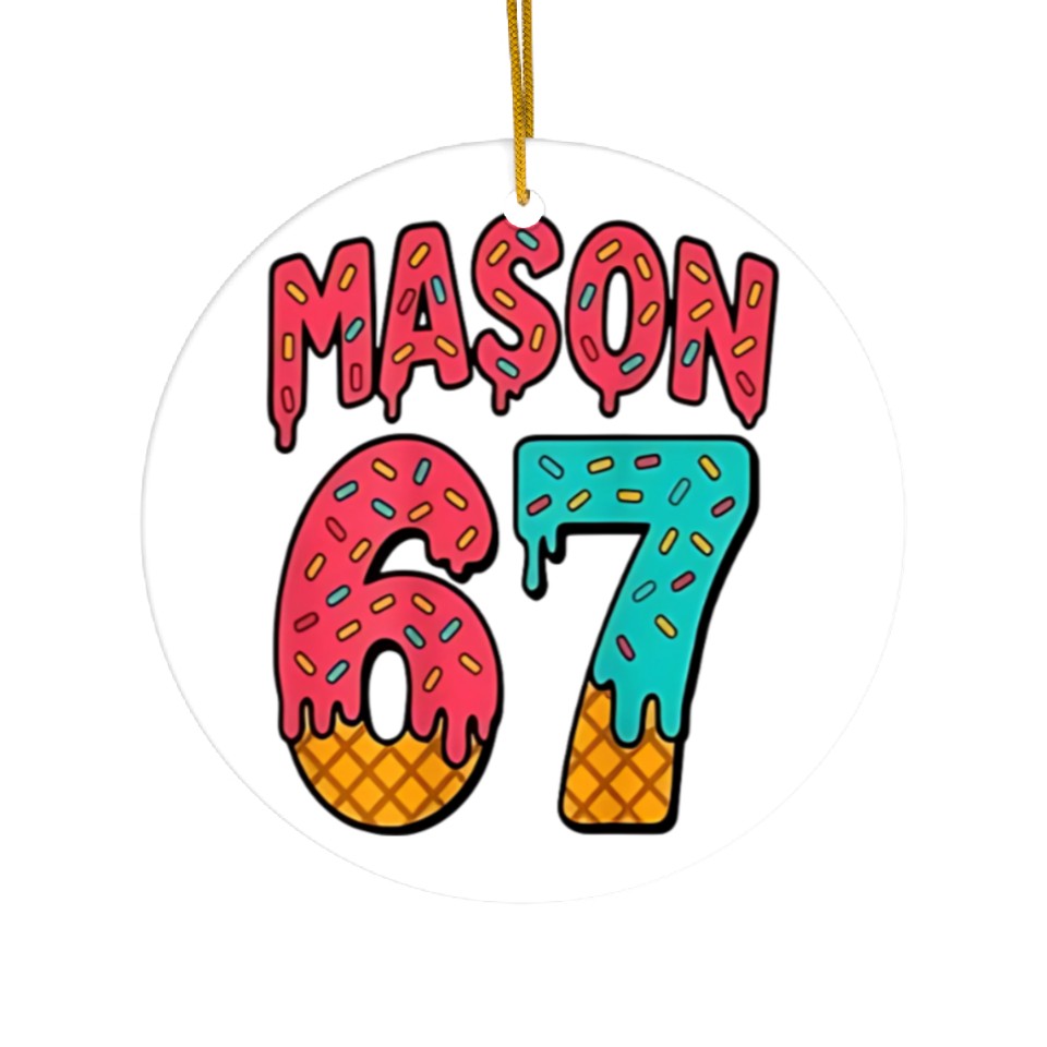 You are viewing one of the trendiest products Mason 67 Ice Cream Cute Meme Six Seven Ceramic Ornaments For WHITE belong theme Ceramic Ornaments at Printblur