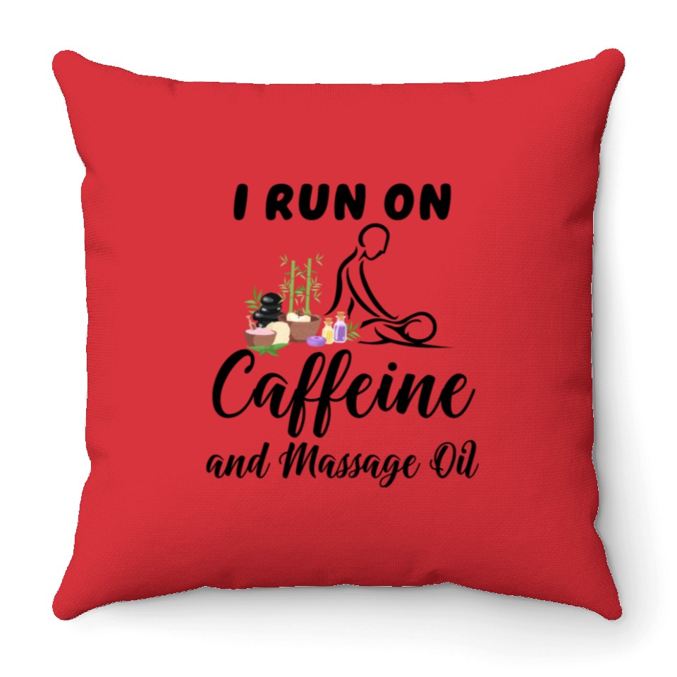 You are viewing one of the trendiest products Massage Therapist I Run On Caffeine Massage Oil Throw Pillows For Cover Only Red belong theme Throw Pillows at Printblur