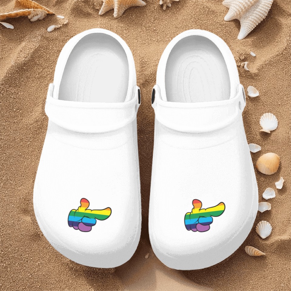 The product unique design you searched for is Matching Lesbian Couple She's Mine Part2 Nurse Clogs For Men WHITE belong theme Nurse Clogs at Printblur