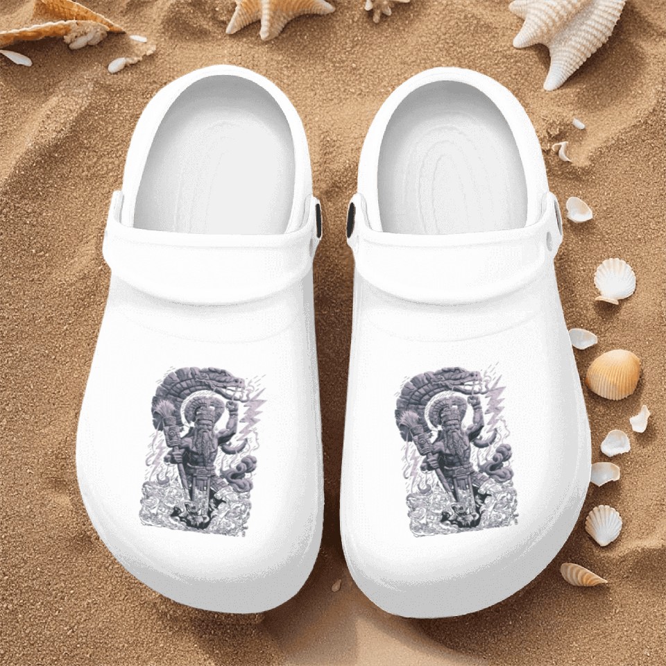 You are shopping for a stunning and trendy product Maya God Mayan Mythology Chaac with Lightning and Nurse Clogs For Men WHITE belong theme Nurse Clogs at Printblur