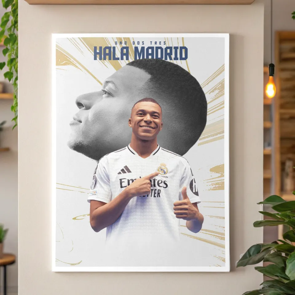 You're searching for a one-of-a-kind product Mbappe Vertical Poster - Hala Madrid Inspired Soccer Wall Art For belong theme Premium Matte Vertical Posters at Printblur