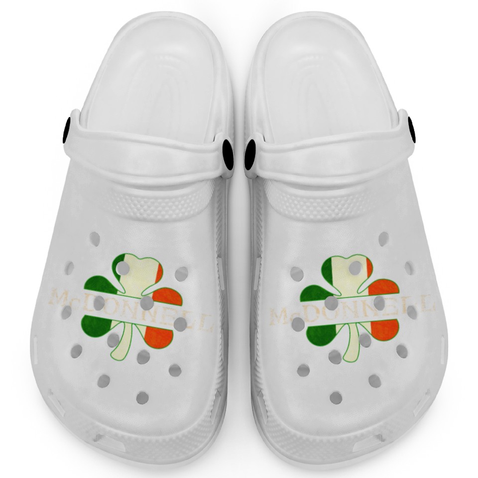 You're searching for a one-of-a-kind product Mcdonnell Irish Surname Ireland Flag Shamrock Clogs For Kids WHITE belong theme Clogs at Printblur