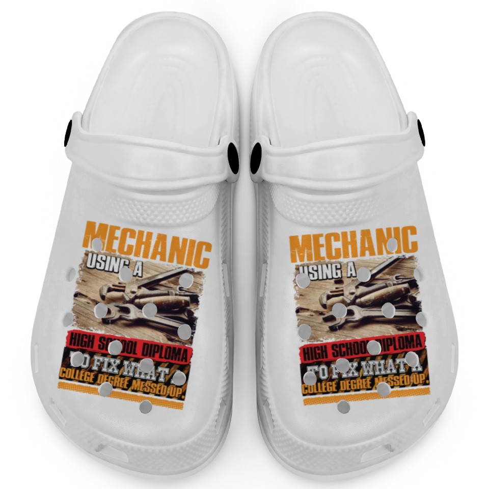 The product unique design you searched for is Mechanic Using A High School Diploma To Fix Clogs For Kids WHITE belong theme Clogs at Printblur