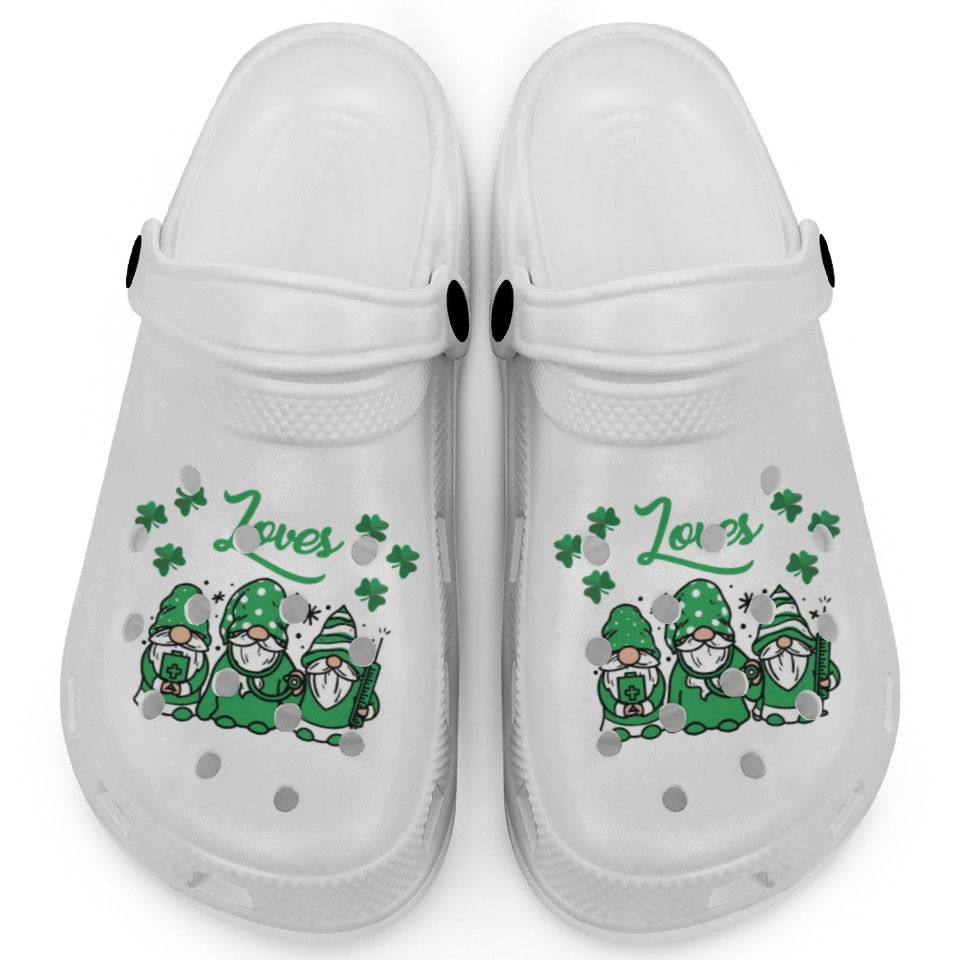 You're taking a peek at the product Med-Surg Nurse St. Patricks Day Clogs For Kids WHITE belong theme Clogs at Printblur