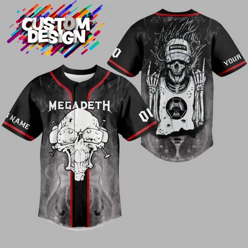 Buy eye-catching Megadeth Band Baseball Jersey Custom Name Gift For Fans or see more Baseball Jerseys products at Printblur shop now to explore many surprises from our shop!