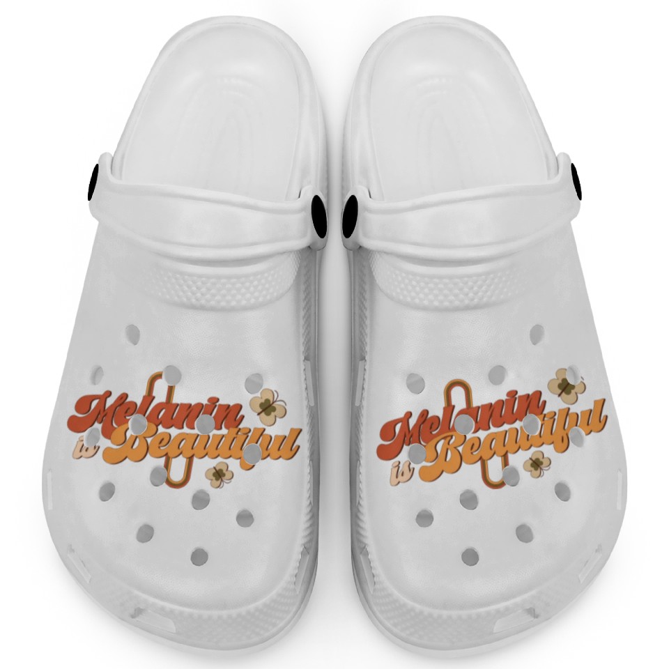 You are viewing an exclusive and elegant product Melanin Is Beautiful, Independence Day Clogs For Kids WHITE belong theme Clogs at Printblur