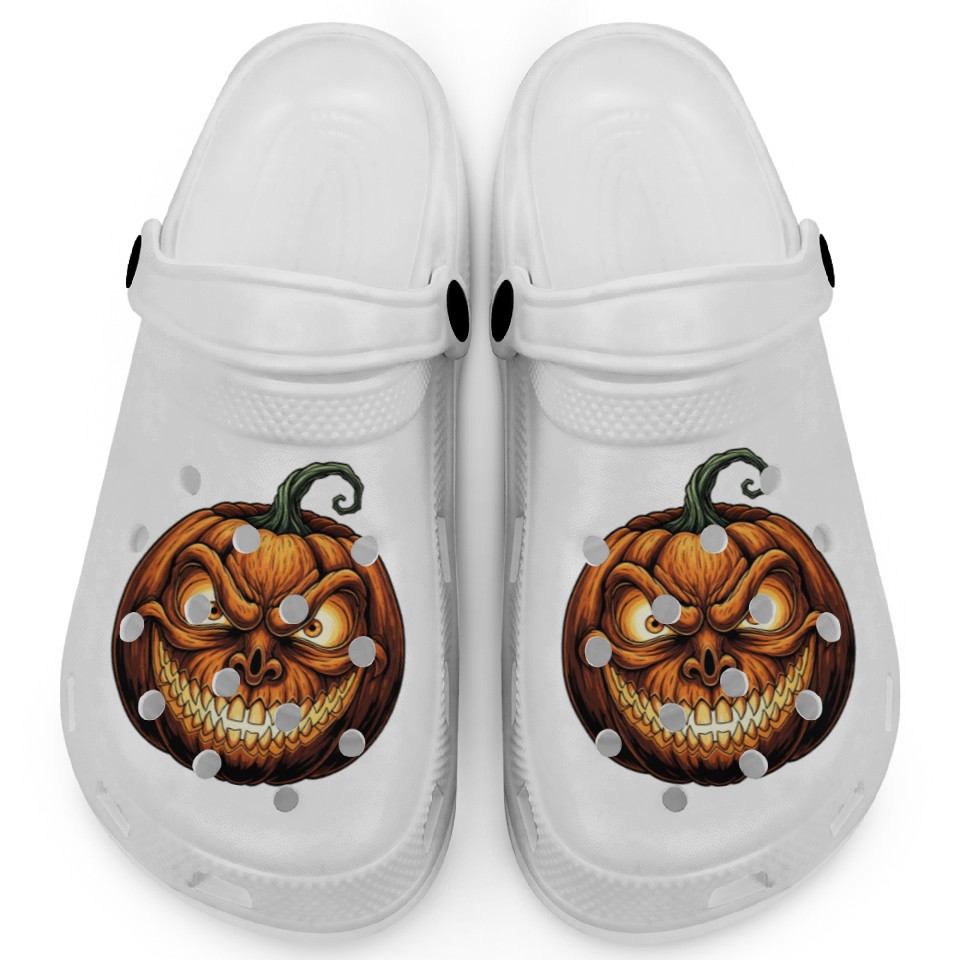 You are viewing one of the trendiest products Menacing Jack-o'-Lantern Face Illustration Clogs For Kids WHITE belong theme Clogs at Printblur