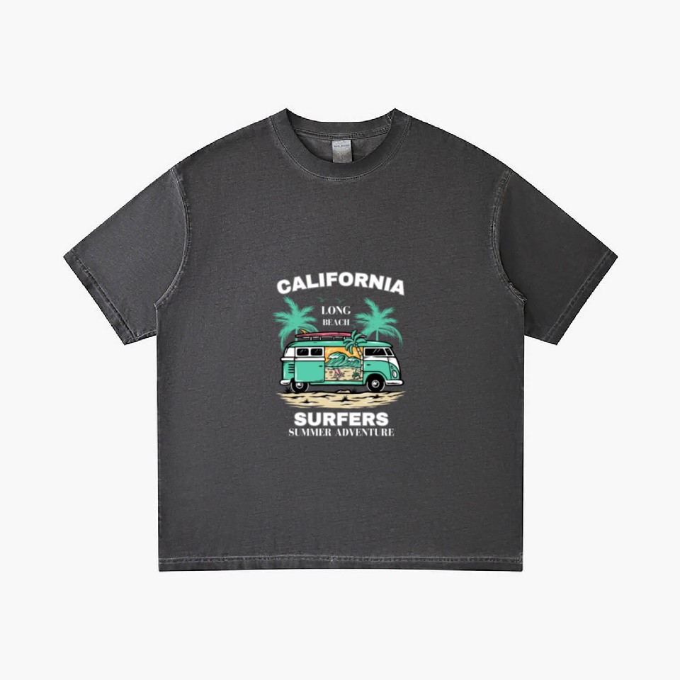 You're searching for a one-of-a-kind product Men's And Women's California Long Beach Print Gradient T Shirts For Men Washed Black belong theme Gradient T-Shirts at Printblur