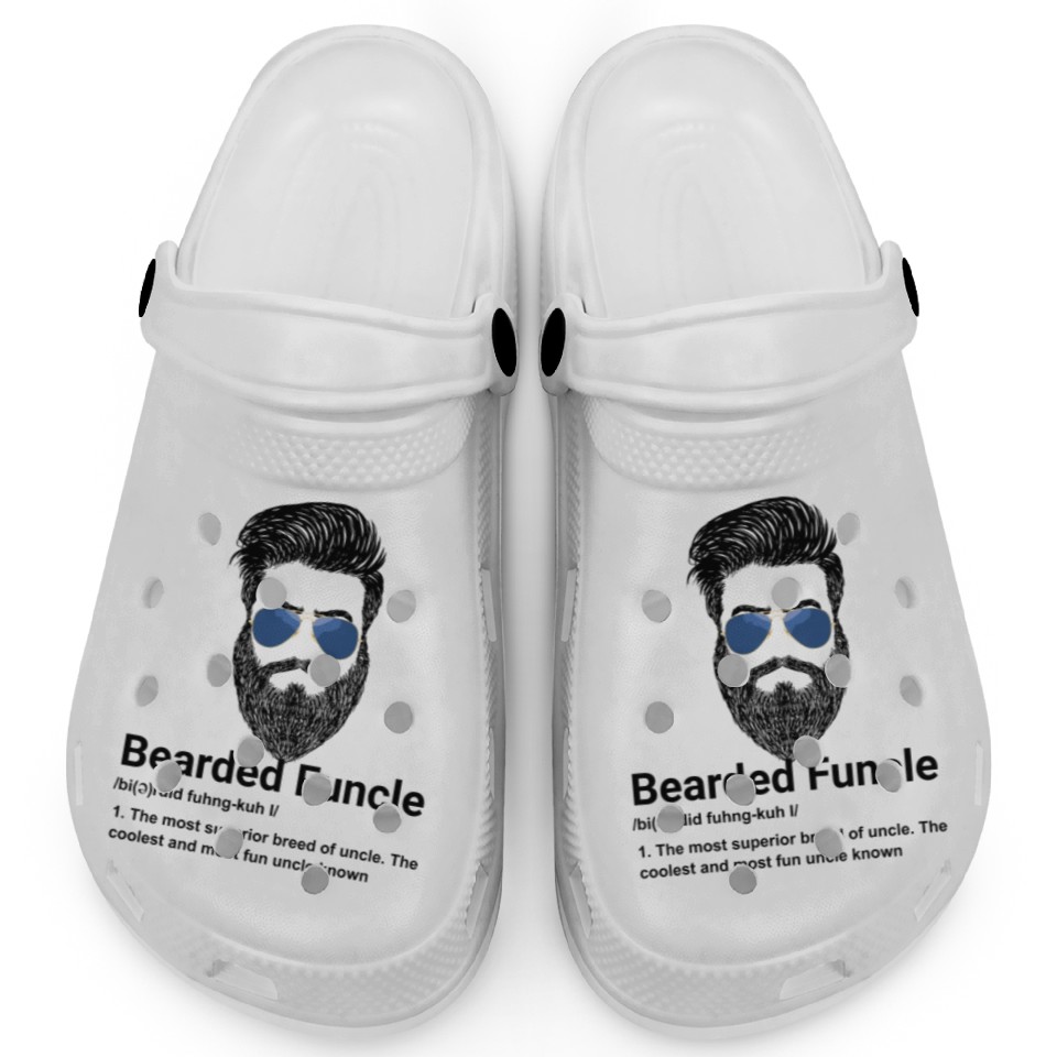 You're looking at the eye-catching product Mens Bearded Funcle Funny Uncle Definition Clogs For Kids WHITE belong theme Clogs at Printblur