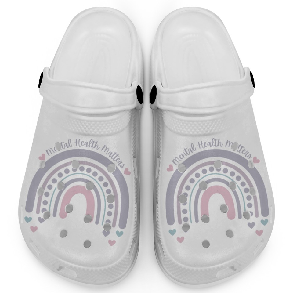 Shop for impressive Mental Health Matters | Rainbow French Gray Clogs or see more Clogs products right now on Printblur to enjoy your happiness!
