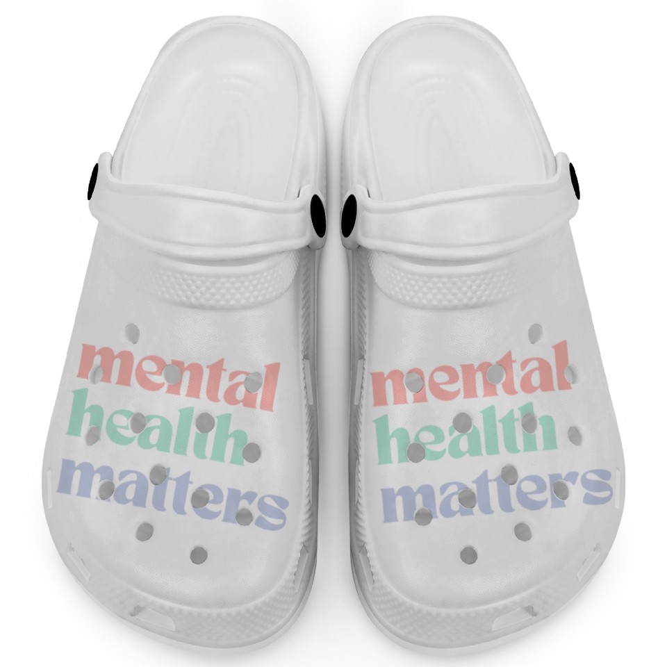 Shop for impressive Mental Health Matters | Retro Quote Pastel Rainbow Clogs or see more Clogs products right now on Printblur to enjoy your happiness!